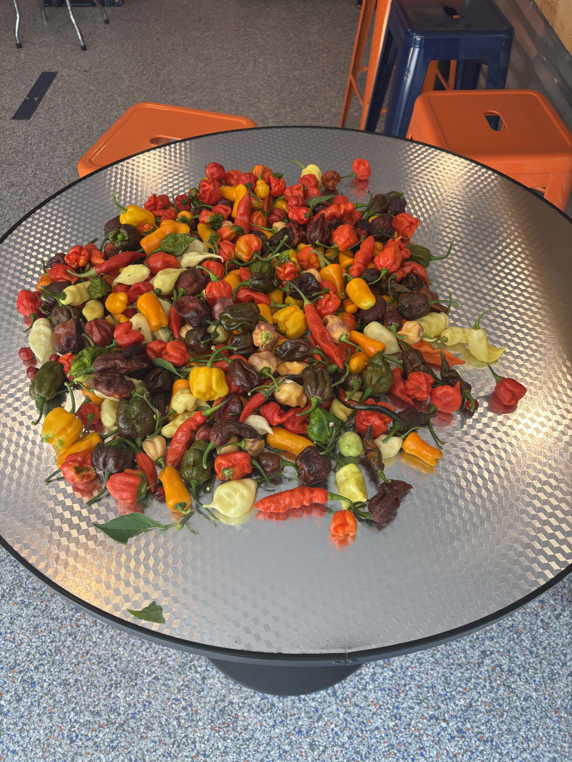 Type | White Reaper, Red Trinidad Scorpion, 7 pot Primo Chocolate, Hellapeno, Mammoth Jalapeno, Orange Scorpion, Jalapeno, Big Jim, Cayenne, Dwarf Thai, Yellow Reaper, Tabasco, Red Primotalii, 7 Pot Chocolate Douglah, KAOS x Purple Reaper, Primero Habanero, Red Reaper, Jimmy Nardello, Joe E. Parker, KSLS, Fresno, Candy Cane, Orange Spice Jalapeno (OSJ), Gong Bao, Violet Sparkle, Nadapeno, King Naga Chocolate, Komodo Dragon, Hurt Berry, Trinidad Moruga Scorpion Satan Strain, White Jalapeno, Red Ghost, 7 Pot BBG White, Red Flame Cayenne, Sugar Rush Peach, Sugar Rush Peach, Pointed Mustard Habanero, Bad Apple, Red Scotch Bonnet, Peach Reaper, Pink Tiger, Star Scream, Yellow Ghost, Purple Jalapeno, PSK Plum Loco, Mustard Scorpion, Red Cherry, Rob’s Folly, JP Armageddon Burgundy (Perkins), Sugar Cream, VSRP x Poblano, Lemon Ghostly Jalapeno, KAOS, Black Widow, No Heat 7 Pot Primo, Chocolate Bismark, Black Pearl, Lunchbox, Gasoline, Gator Jigsaw, Solid Gold Ghost, Chocolate Deadpool, Orion, White Scorpion, Datil, Pumpkin Spice Jalapeno, Butch T Scorpion, Red Primotalii, Chocolate Ghost, Red Caribbean Habanero, Faddas Sweet Purple, Chocolate Habanero, Scorpion Hulk, Fox Gnarly Ruby Ghost, Big Olive Mama, KS Scarlett Rose, 7 Pot Cinder, Golden Reaper, 7 Pot Primo, White Habanero, Black Thai, PSK Thors Endgame, Mayan habanero, Gold Ghost, Naga Smooky Rainbow, Chocolate death spiral, KSPS, Red Naga BBG, PSK Orange Loco, Reaper pink/peach, Serrano, White ghostly jalapeno, Scorpion x Habanero, Aji Fantasy, Poblano, Multicolored Jalapeno, Devils tongue red, Big black mama, Multicolored Bell, Blood Ghost, Chocolate Primotalii, 7 Pot Chocolate |